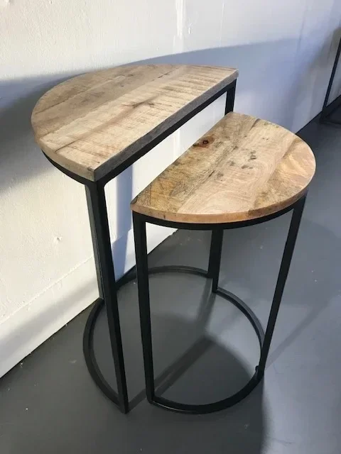 De salontafel set is gemaakt van mangohout. Mangohout is een duurzaam materiaal en staat bekend om zijn kleurschakeringen in het hout, wat voor een unieke uitstraling zorgt. Het onderstel van de salontafels is gemaakt van een gepoedercoat, zwart metaal.