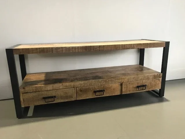 TV meubel - 3 schuiven in mangohout gecombineerd met metaal.