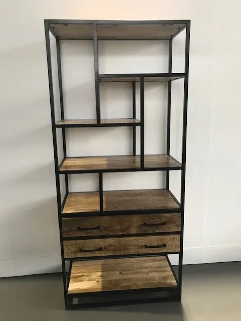 Industriële wandkast in mangohout - 2 schuiven