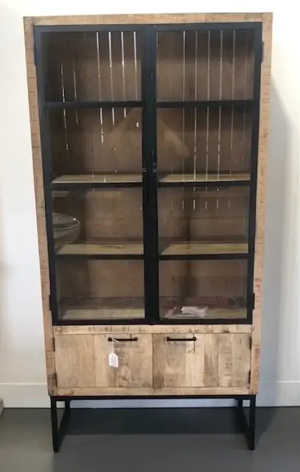 Vitrinekast in Mango/Metaal 100 x 40 x 200